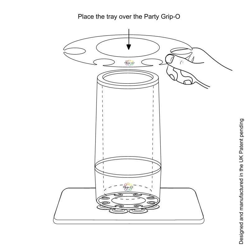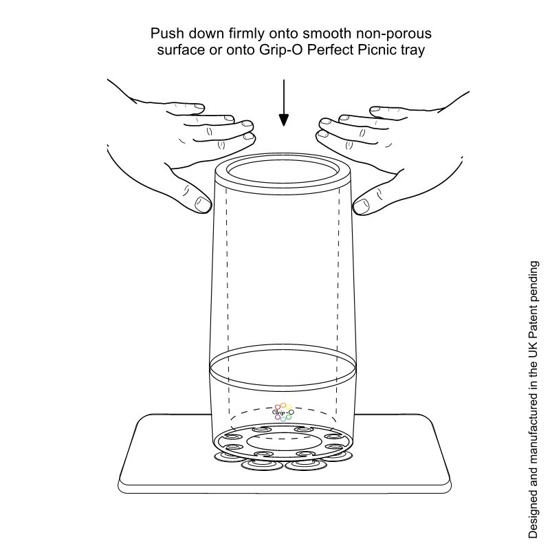 The Grip-O Picnic Party Bar will bring safety and style to any occasion. For best results, make sure suction feet and surface of the Perfect Picnic Tray is clean. Give the Grip-O a firm push down to make it stick! To remove, pull sideways from the top while lifting the release tabs on the suction feet. Grip-O is not responsible for broken bottles, spillages or any accidents resulting in the misuse of the Grip-O. Do not use this product for purposes other than the manufacturer intended. Clean with damp cloth. Do not insert hot drinks.